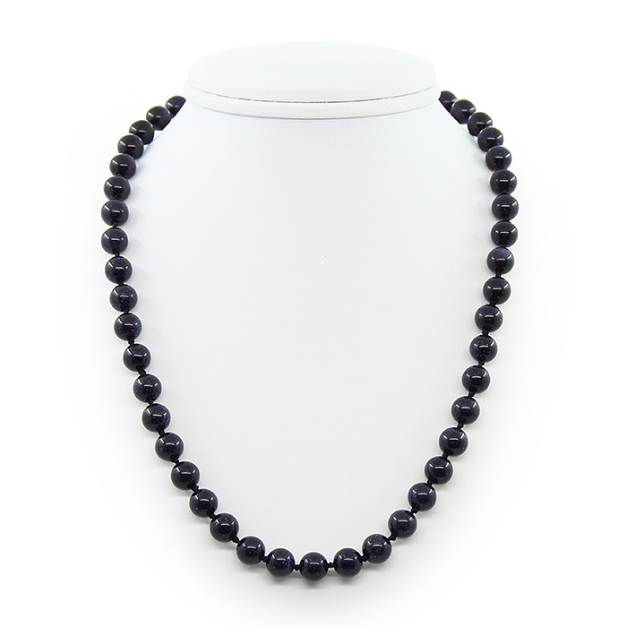 Классические короткие бусы из синего авантюрина с круглыми бусинами диаметром 8мм. Длина бус 45см.