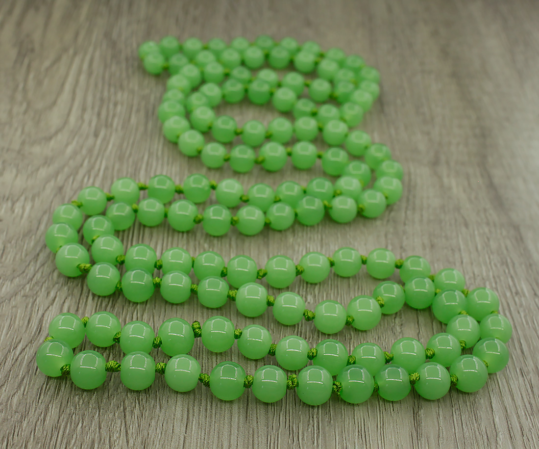 Бусы зеленый халцедон, круглые 8мм, длинные 122см