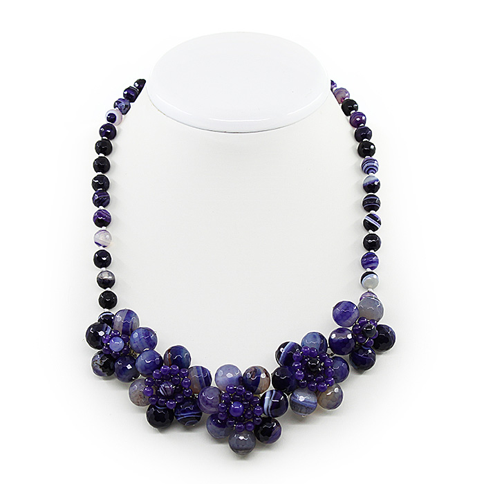 Изумительная композиция их пяти агатовых фиалок фиолетового цвета, собранных в роскошный букет. Длина ожерелья 50см.