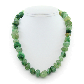 Бусы из натурального зеленого агата в форме галтовки. Длина бус 45-52см (регулируется с помощью удлинняющей цепочки). Средний размер бусин 12х14мм.