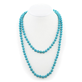 Классические бусы из голубой бирюзы (имитация) длиной 110см. Их можно носить, обернут два раза вокруг шеи или завязав узлом. Размер бусин 8мм. Длина бус 120см.