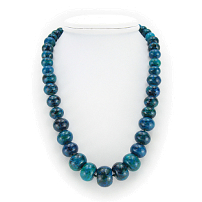 Роскошные разноразмерные бусы из хризоколлы станут достойным дополнением Вашего наряда. Длина украшения 50см, размер бусин варьируется от 10 до 20мм.