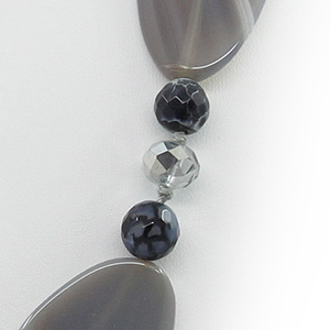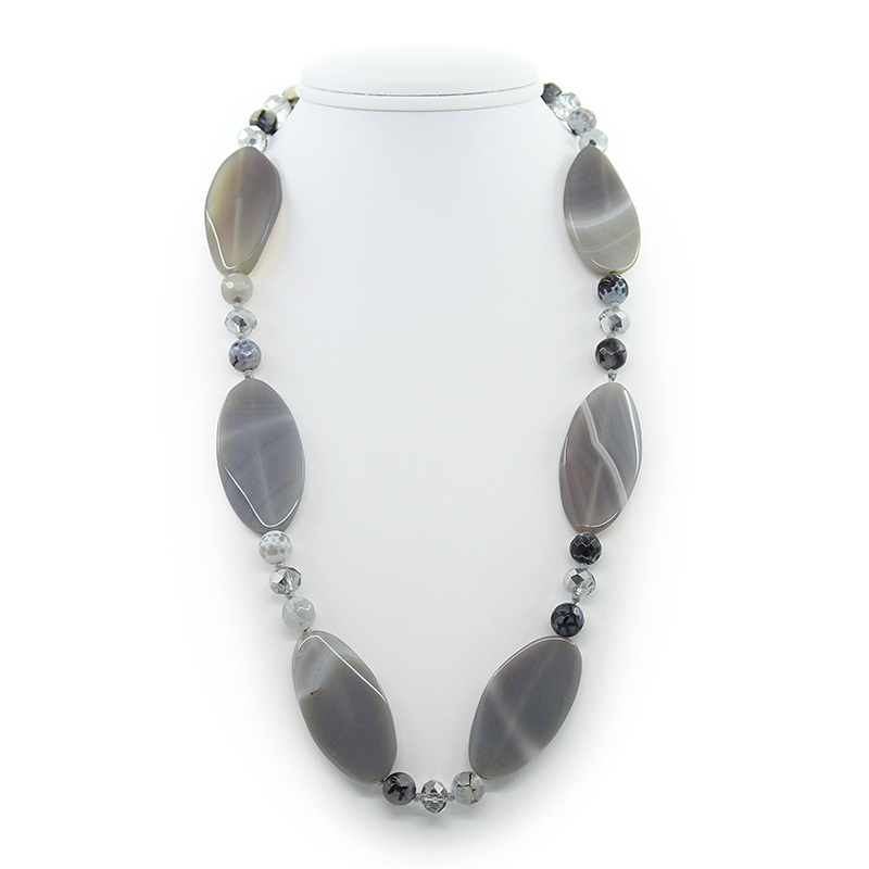 Бусы из натурального серого агата. В бусах используются граненые вставки из чешского стекла с переливами. Размер бусин 26х48мм. Длина бус 62см.