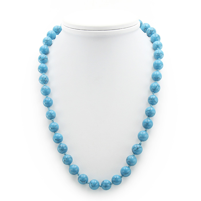 Бирюза голубая (имитация), круглые 10мм, "Классика" бусы короткие 46м через узелок