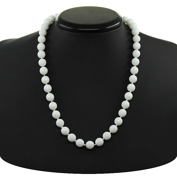 Агат белый (кальцит), круглые гранёные 10мм, бусы 49см