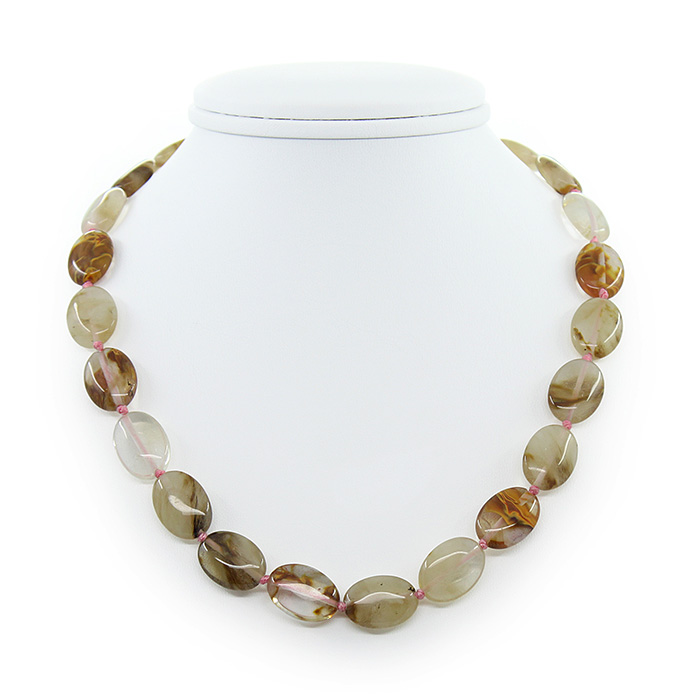 Бусы кварц, плоские овальные 13х18мм, короткие 46см