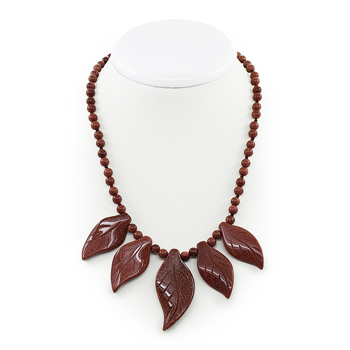 Колье коричневый авантюрин "Ева", плоские листики, короткое 45см