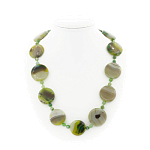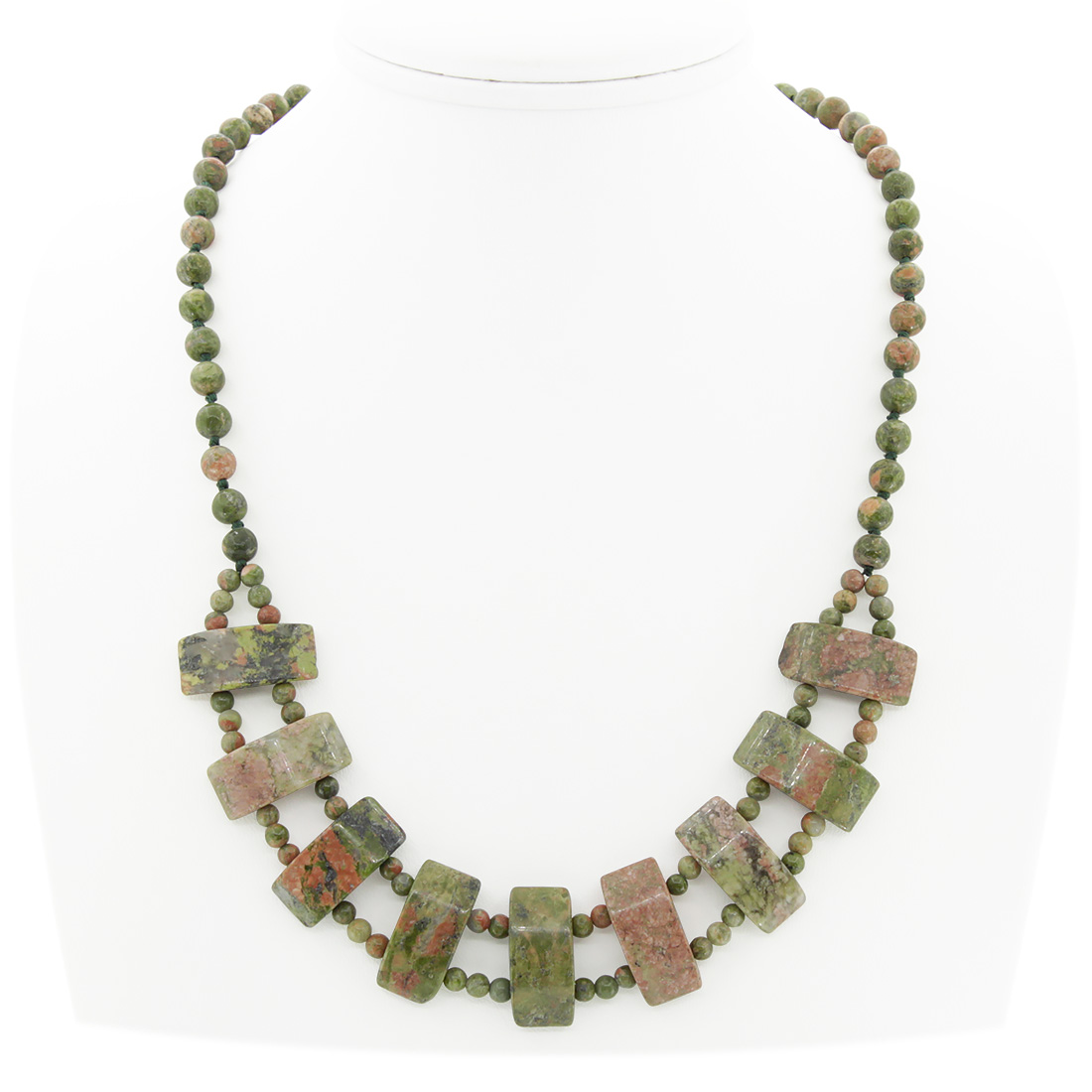 Колье "Лидия" из изумительного натурального унакита хорошо ложится на шею и смотрится богато и презентабельно. Размер круглых бусин 6мм, размер прямоугольных бусин 24мм. Длина бус 53см.