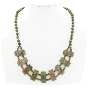 Бусы "Лидия" унакит, прямоугольные бусины 24мм, длина 53см