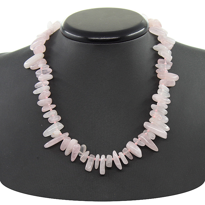 Оригинальные бусы из гальки натурального розового кварца. Длина бус 46см.