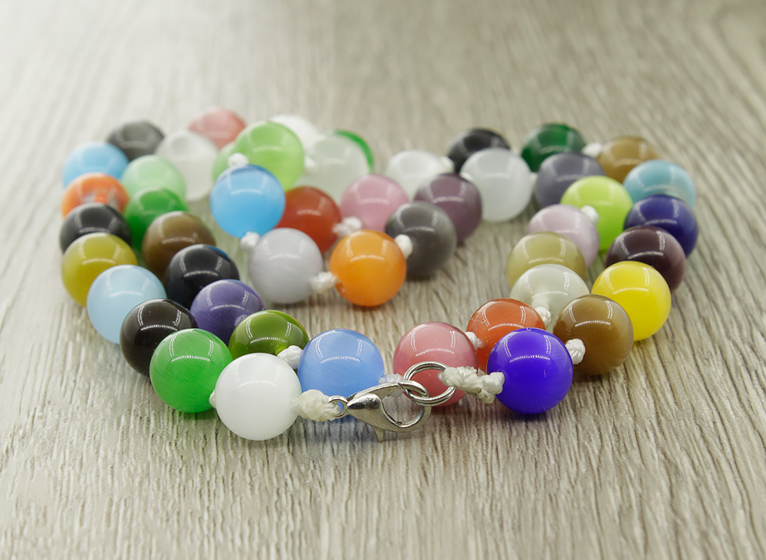 Кошачий глаз разноцветный, 10мм, бусы "Колибри" длиной 60см
