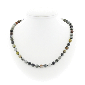 Бусы выполнены из натуральной яшмы. Размер бусин 7мм. Длина бус 46см, удлиняется с помощью цепочки.