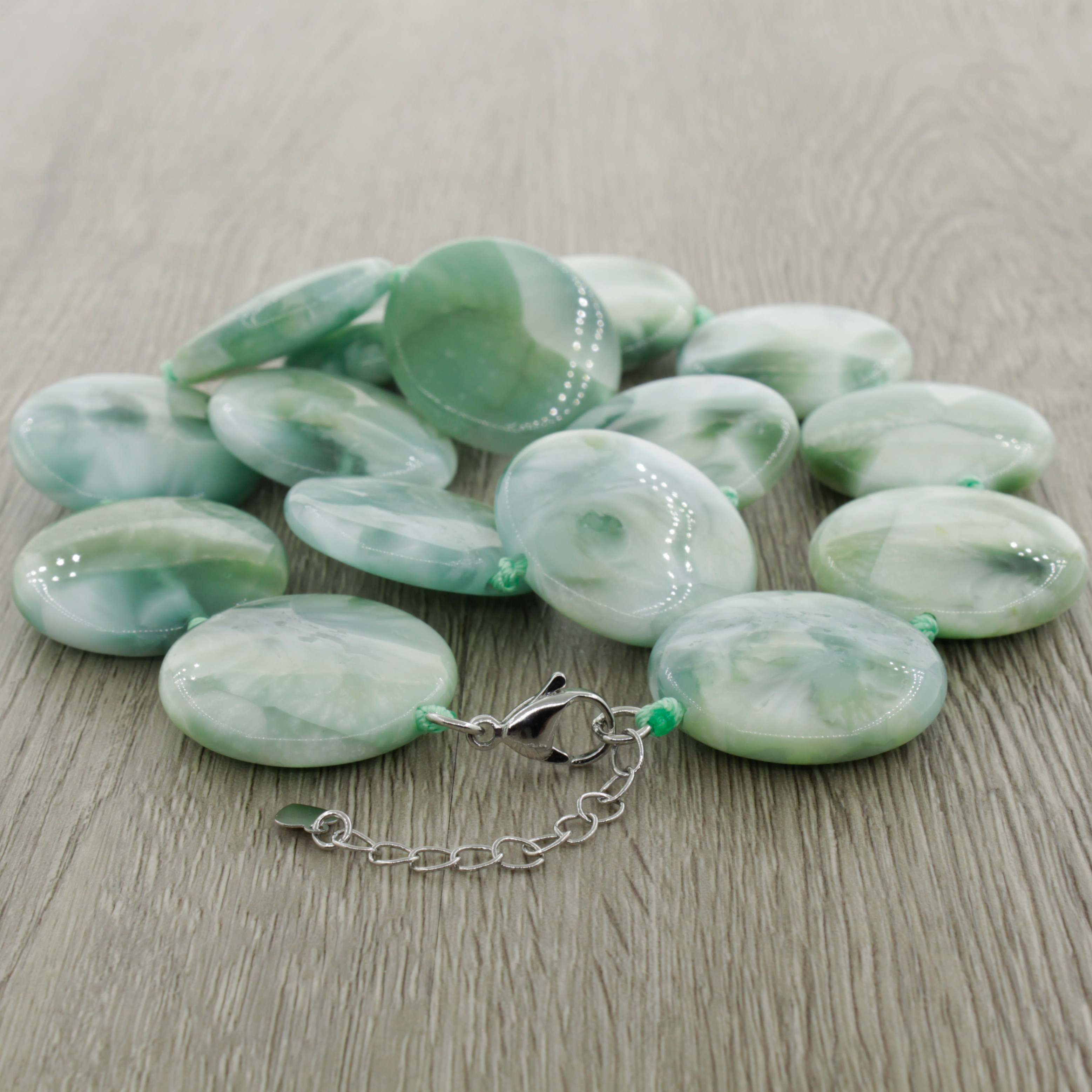 Бусы из ангелита, плоские круглые 30мм, длина 46см