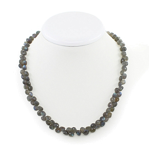 Это великолепное украшение собрано из бусин натурального лабрадора ручной огранки. Бусы собраны индийскими мастерами вручную. Длина бус 47см. Размер бусин от 5мм у застёжки до 7мм в центре.