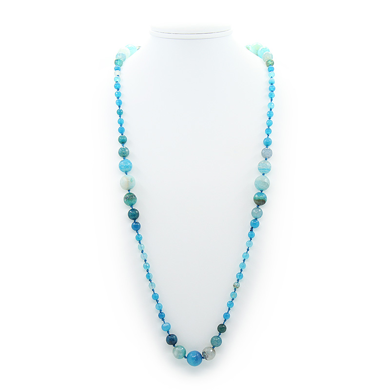 Бусы синий агат "Равновесие-мини", разноразмерные 6..14мм, средние 76см
