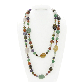 Самоцветы разноразмерные круглые с плоскими овалами 18х25мм, бусы "Стихия", длина бус 132см