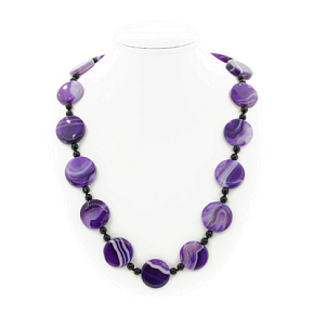 Агат фиолетовый, плоские круглые 29см, бусы длиной 67см
