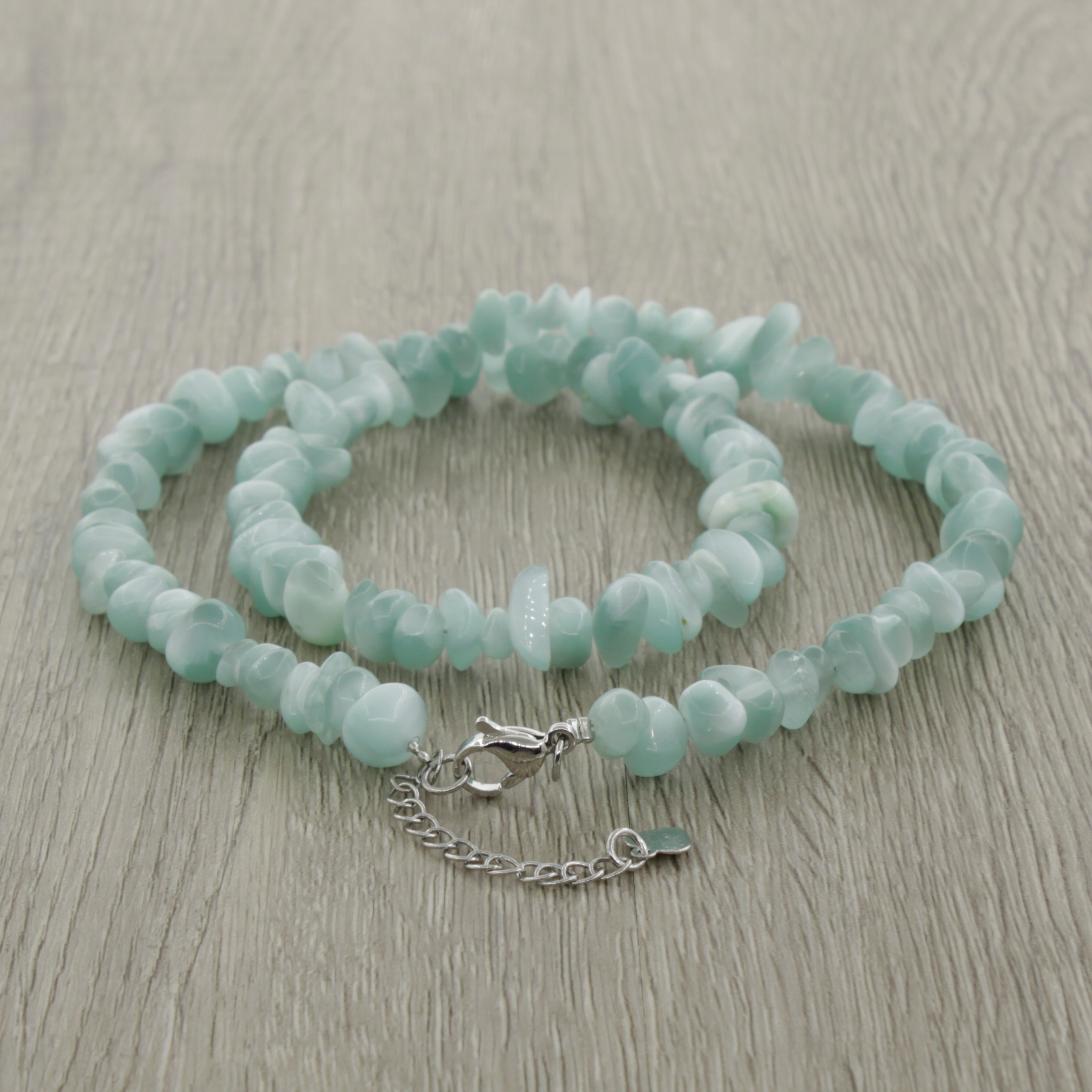 Бусы "Россыпь" из натурального ангелита придадут Вашему образу нежный свежий шарм. Украшение на леске, с замком-карабином из ювелирного сплава. Длина бусин от 7 до 10мм. Длина бус 45см, регулируется до 50см за счёт цепочки.