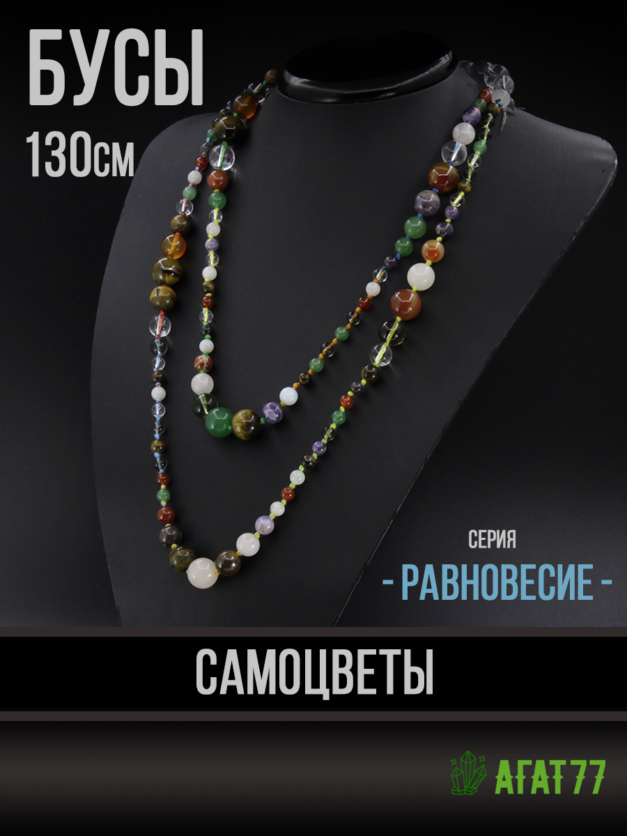 Бусы самоцветы 6..14мм, бусы "Равновесие" 150см