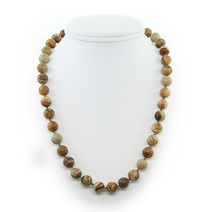 Бусы из натуральной древесной яшмы диаметром 10мм. Длина бус 46см.
