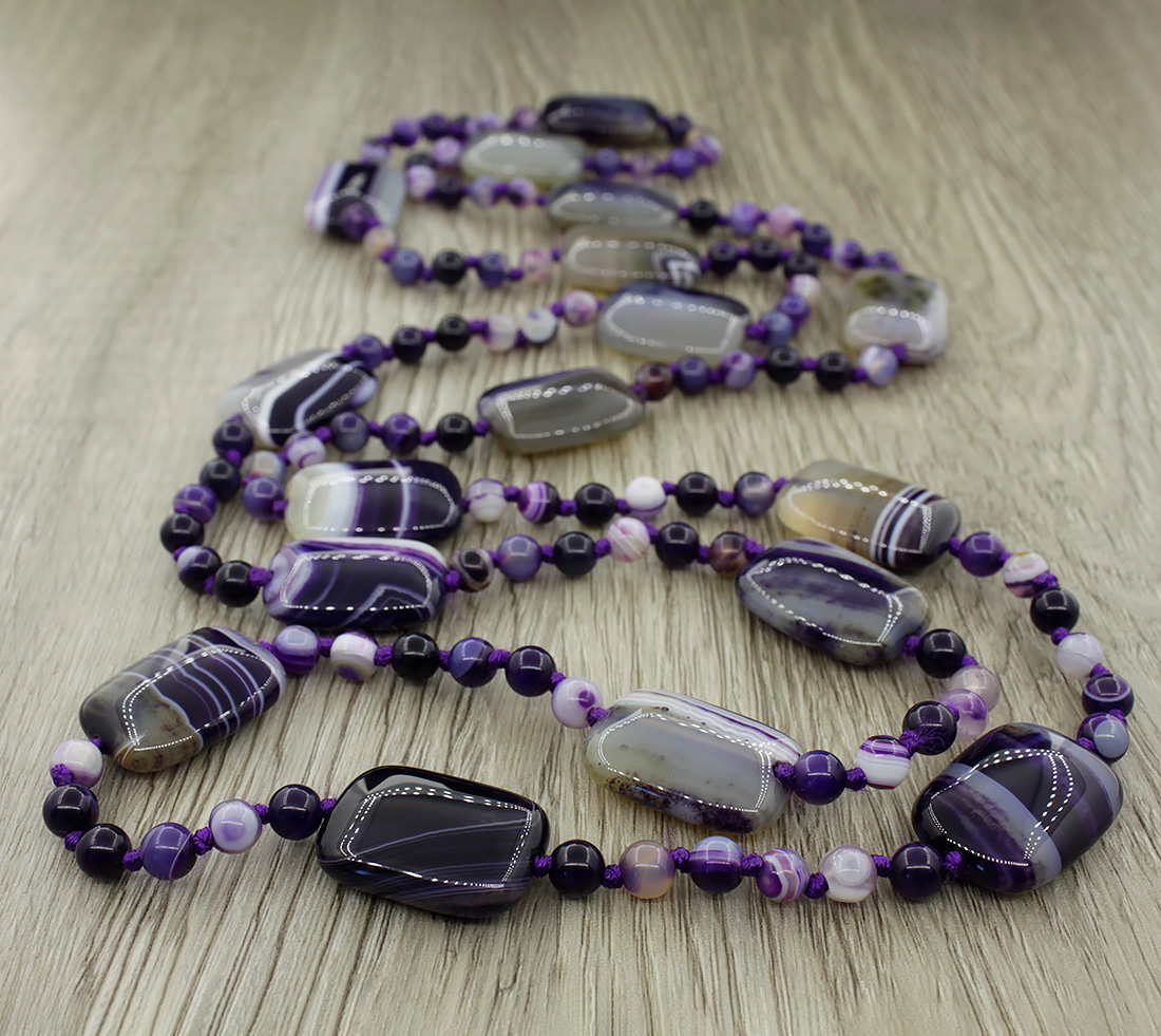 Агат фиолетовый (Бразилия), плоские прямоугольные бусины 18x25мм, бусы "Гармония" длиной 122см