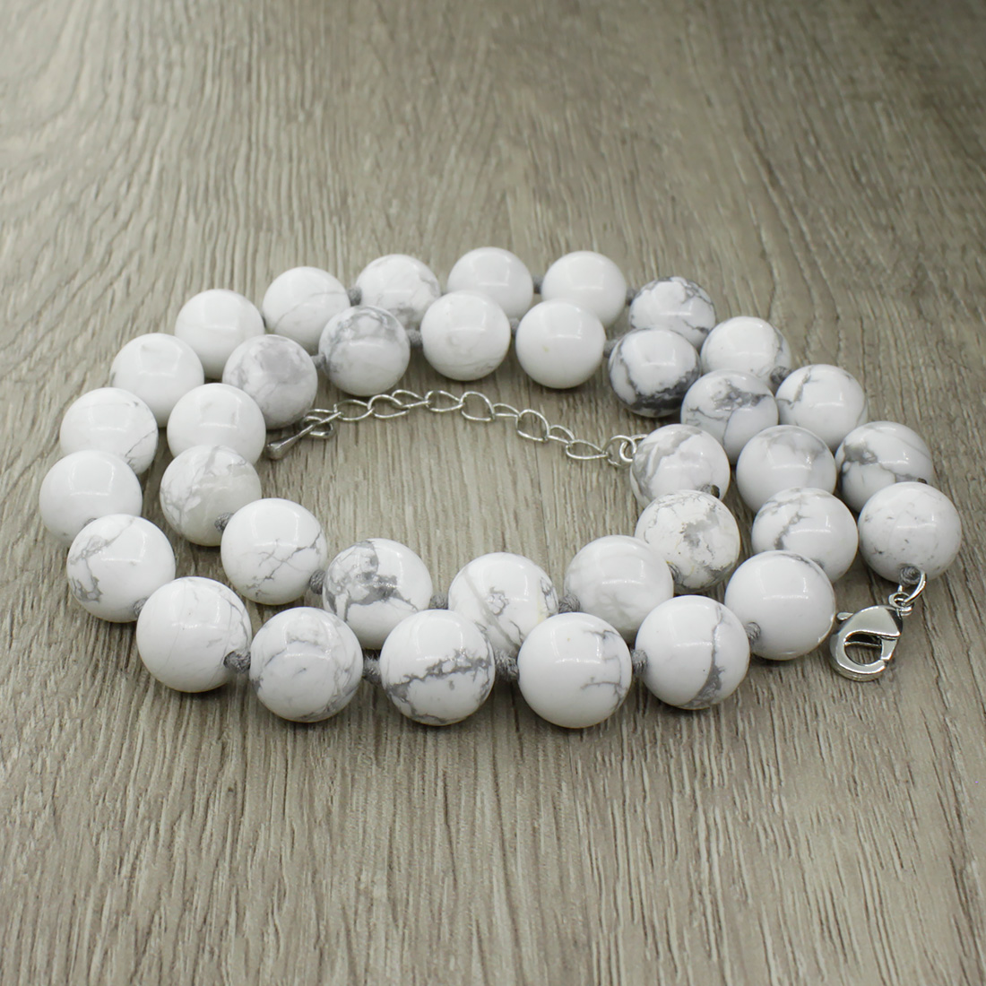 Изящные бусы через узелок из натурального кахолонга станут привлекательным элементом Вашего образа. Украшение на нити, с узелками через каждую бусину и замком-карабином из ювелирного сплава. Диаметр бусин 10мм, длина бус 44см, регулируется до 48см за счёт цепочки.