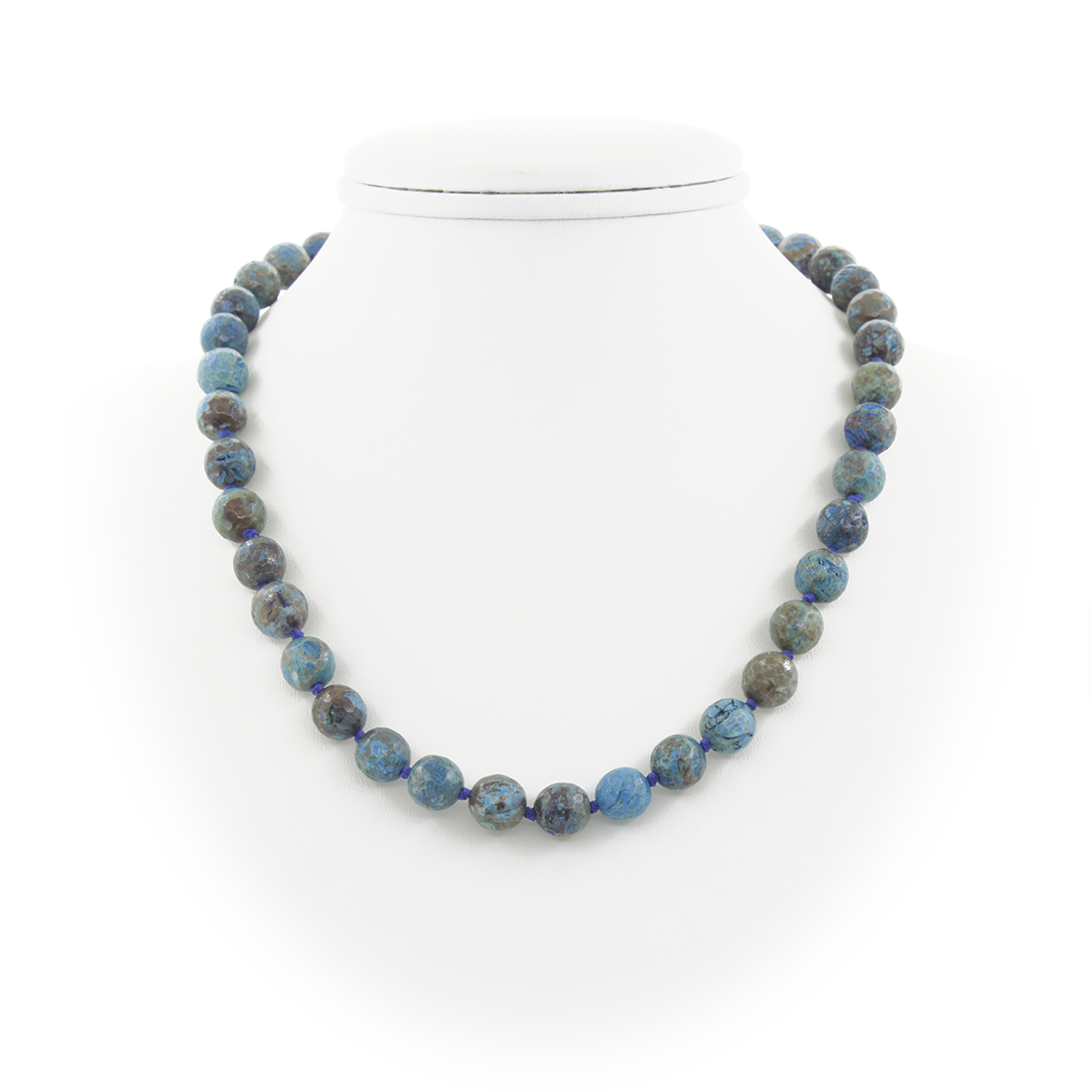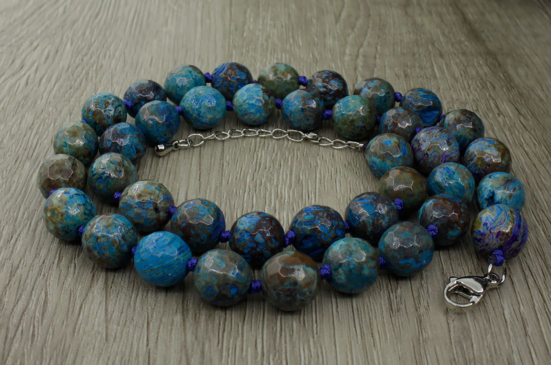 Граненые бусы из хризоколлы прекрасно дополнят Ваш повседневный или праздничный образ. Диаметр бусин 10мм. Длина бус 50см.