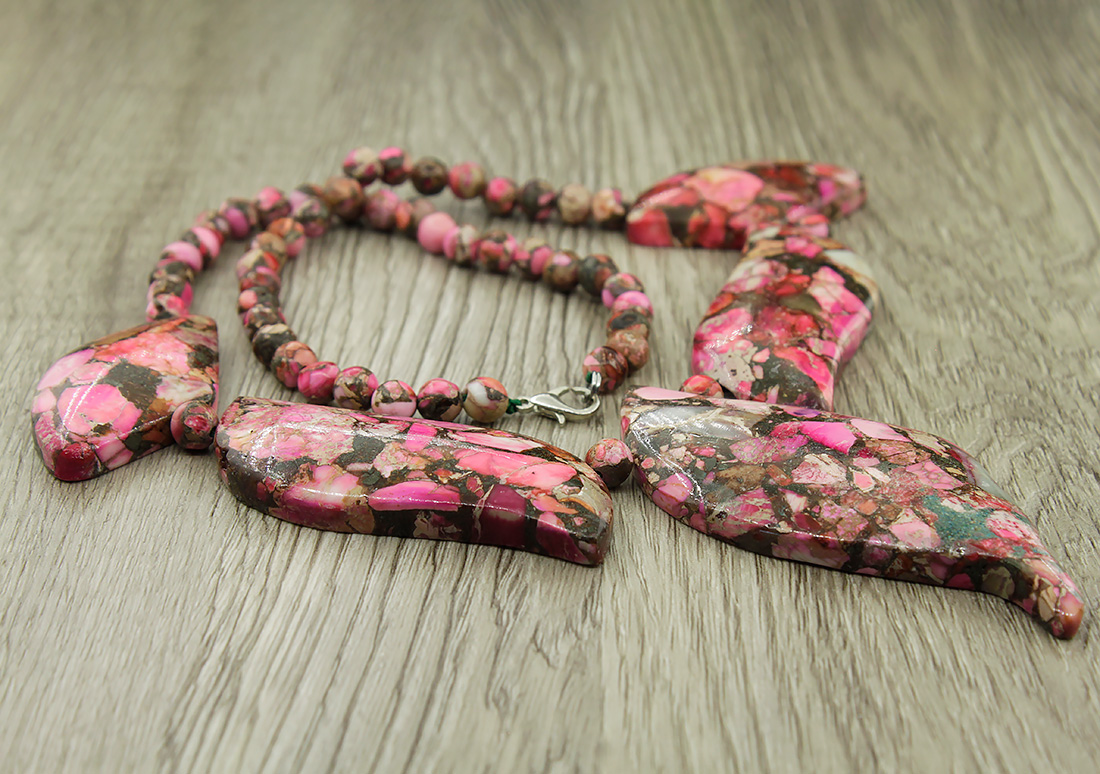 Варисцит ярко-розовый "Морские дали" колье длиной 50см