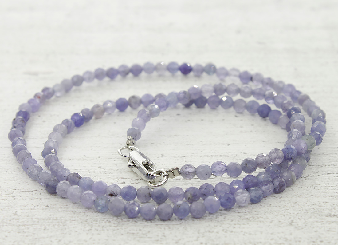 Танзанит гранёный, гранёные матовые бусины 2мм, "Соблазн" бусы длиной 47см