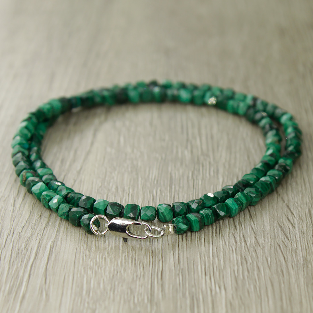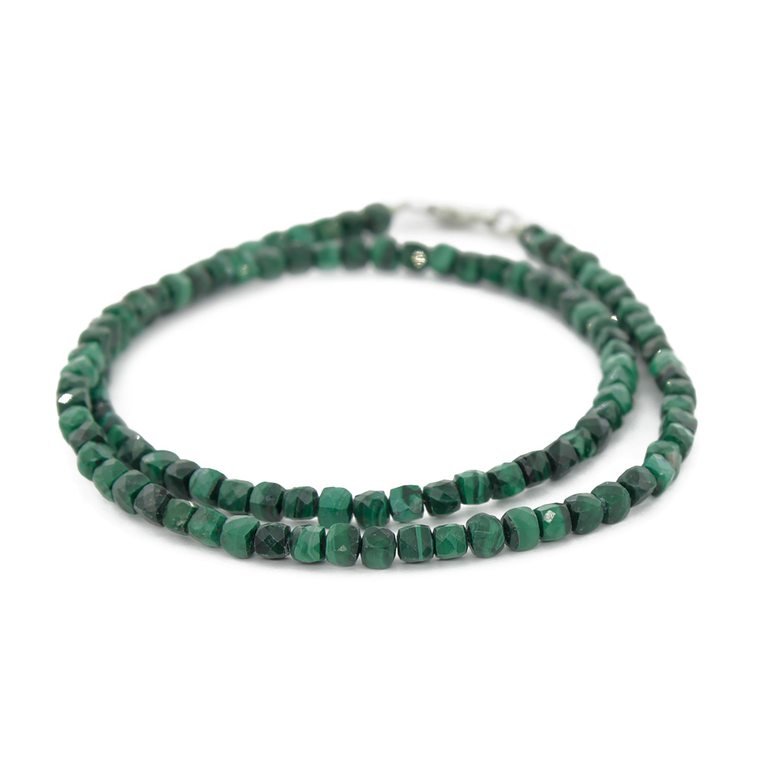 Малахит (Заир), кубики гранёные 4мм, "Окта" бусы 45см
