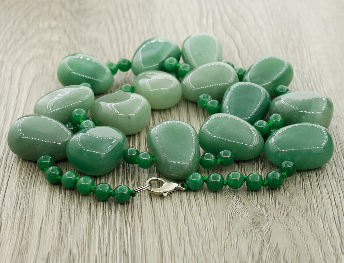 Авантюрин зелёный лепестки через шарик "Лея" бусы 52см
