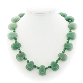 Украшение в строгом стиле из природного авантюрина. Следует учитывать, что бусы немного тяжелее обычных. Размеры бусин-лепестков 20х22мм, длина бус 52см.