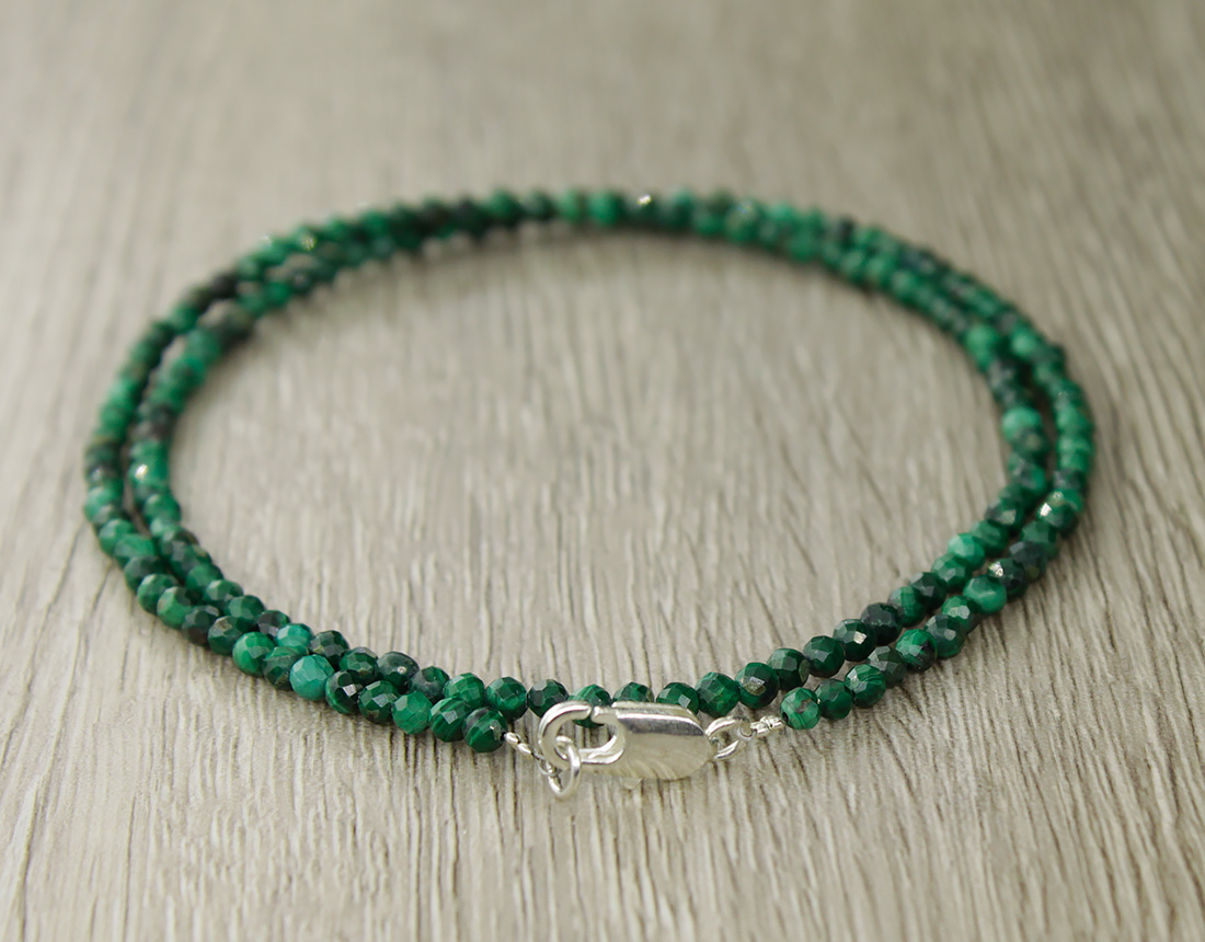 Малахит (Заир) 3мм круглые гранёные бусины, бусы "Соблазн", длина 46см