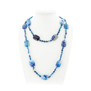 Агат синий (Бразилия), плоские прямоугольные бусины 18x25мм, бусы "Гармония" длиной 126см
