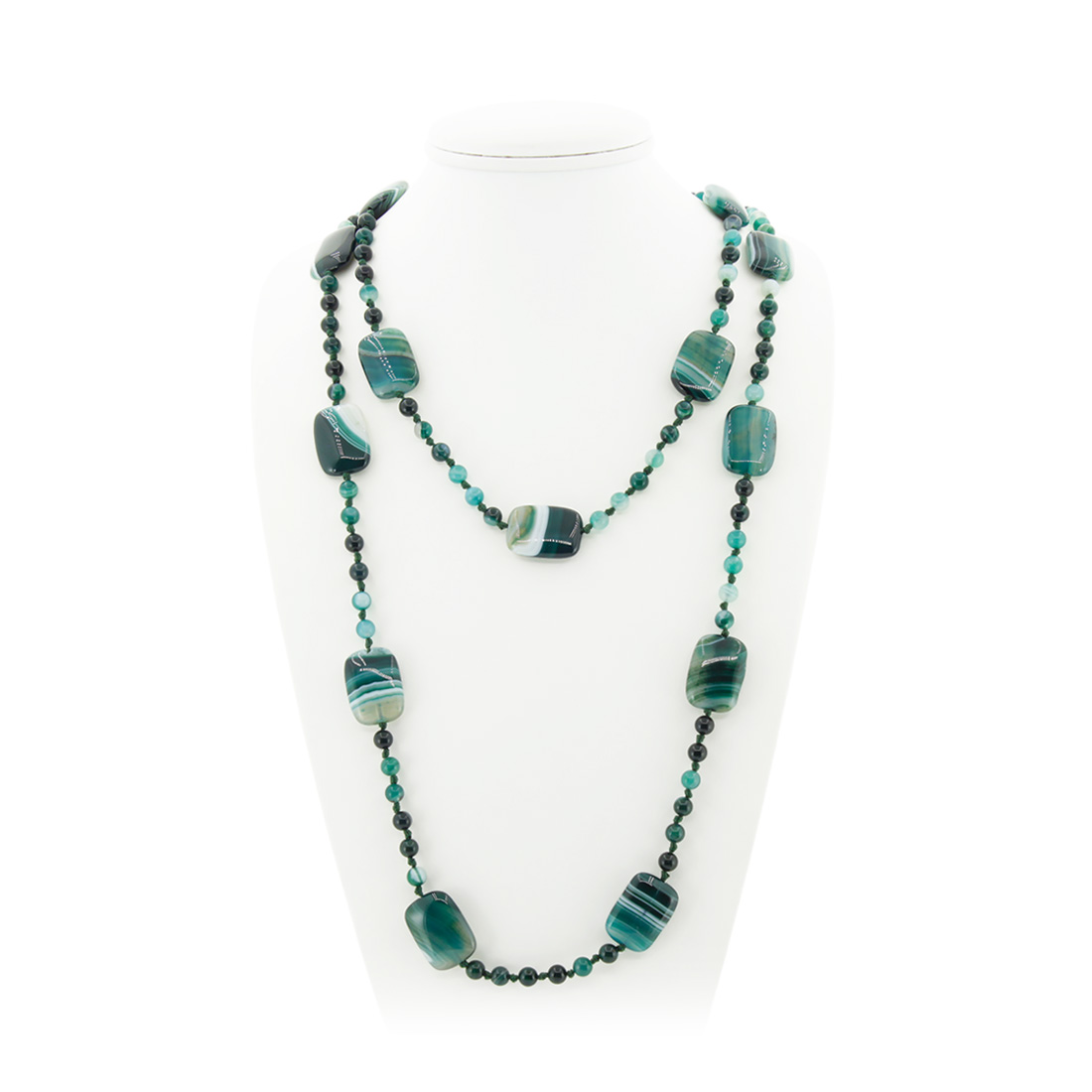 Агат зеленый (Бразилия), плоские прямоугольные бусины 18x25мм, бусы "Гармония" длиной 138см