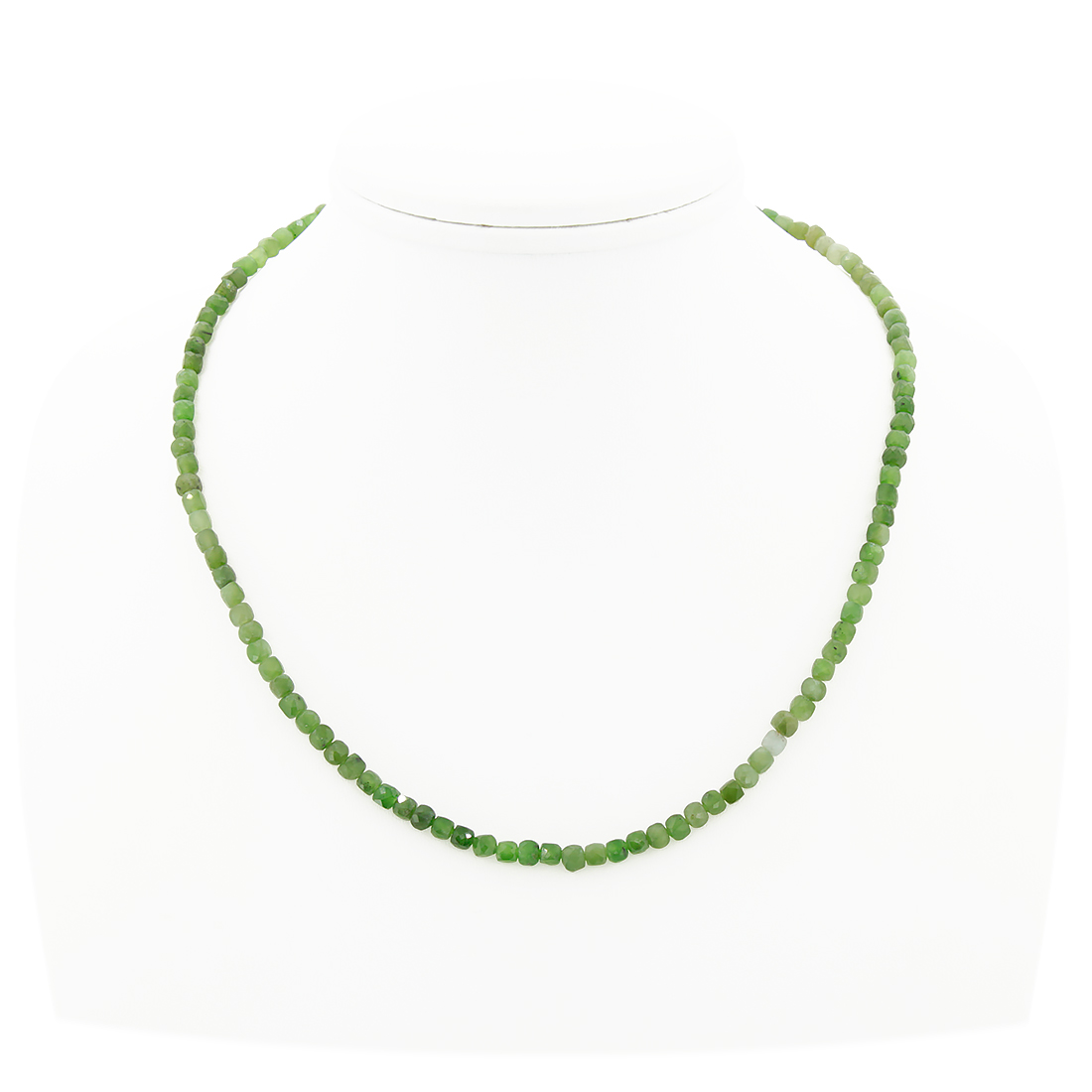 Нефрит (Россия) тёмно-зелёный кубики гранёные 3.5мм, "Окта" бусы 47см