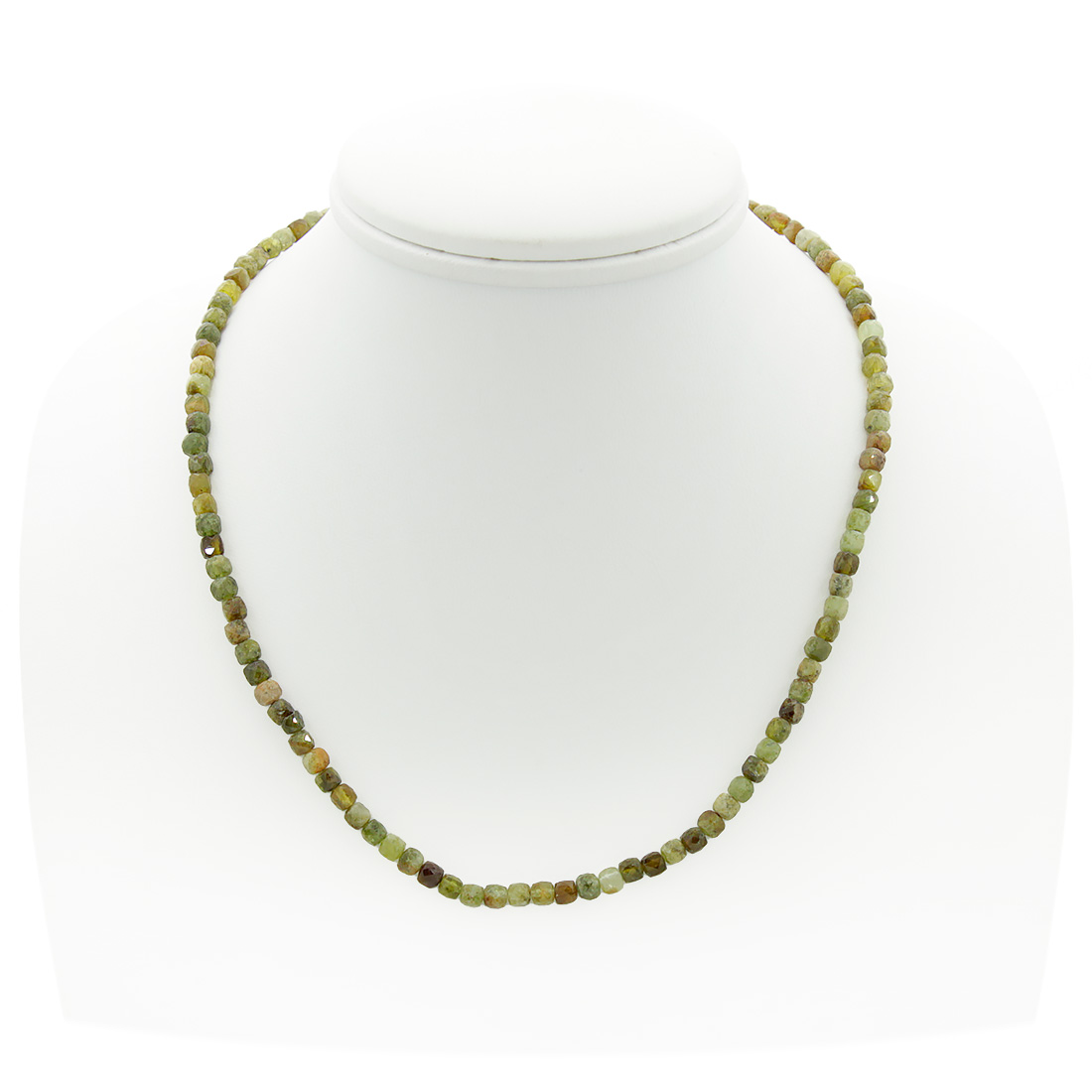 Зелёный гранат (Танзания) "Окта" кубики гранёные 4мм, бусы 50см