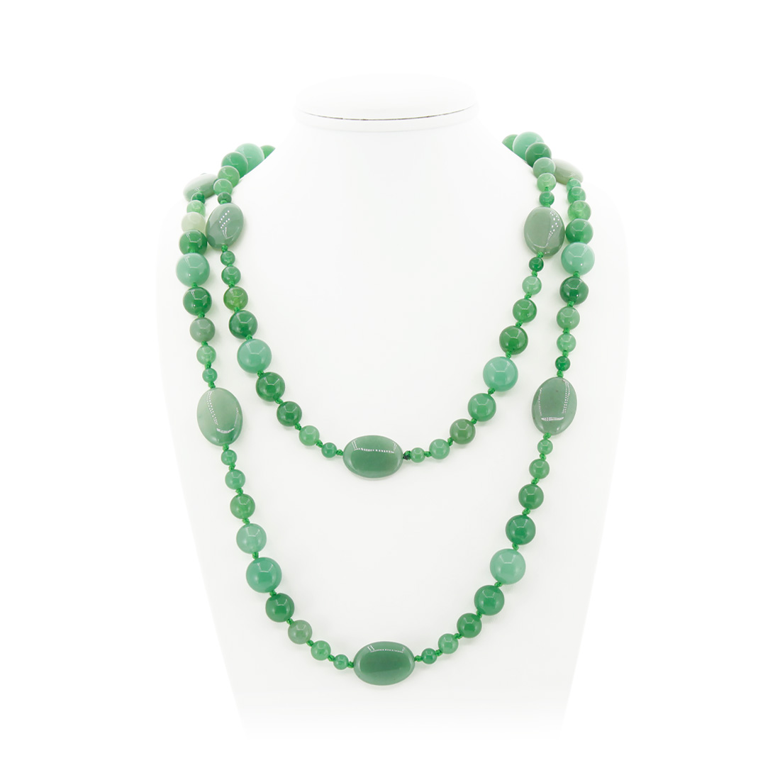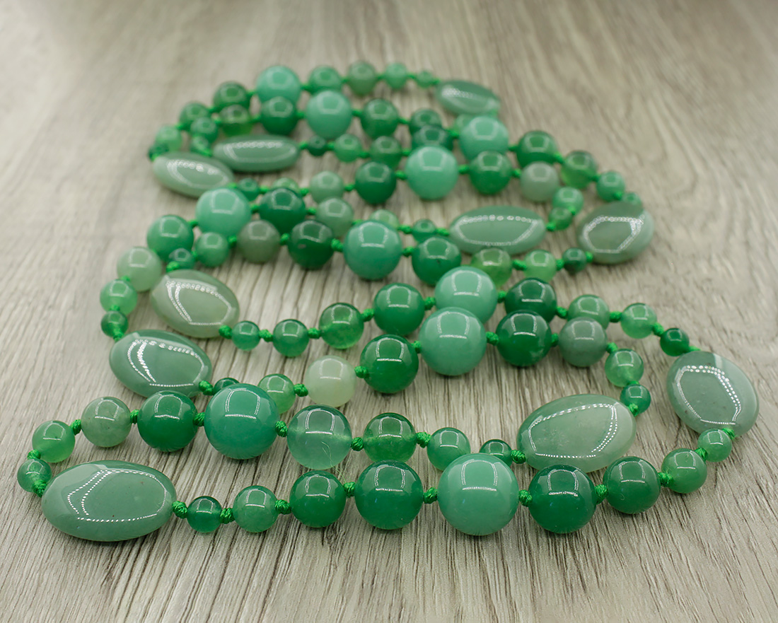 Авантюрин зеленый (Индия), разноразмерные круглые с плоскими овалами 18х25мм, бусы "Стихия", длина бус 134см