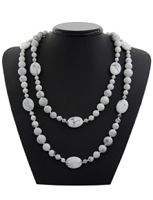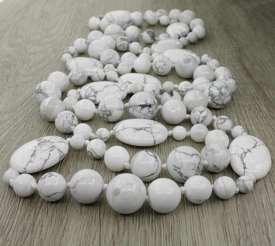 Кахолонг (Казахстан), разноразмерные круглые с плоскими овалами 18х25мм, бусы "Стихия", длина бус 128см