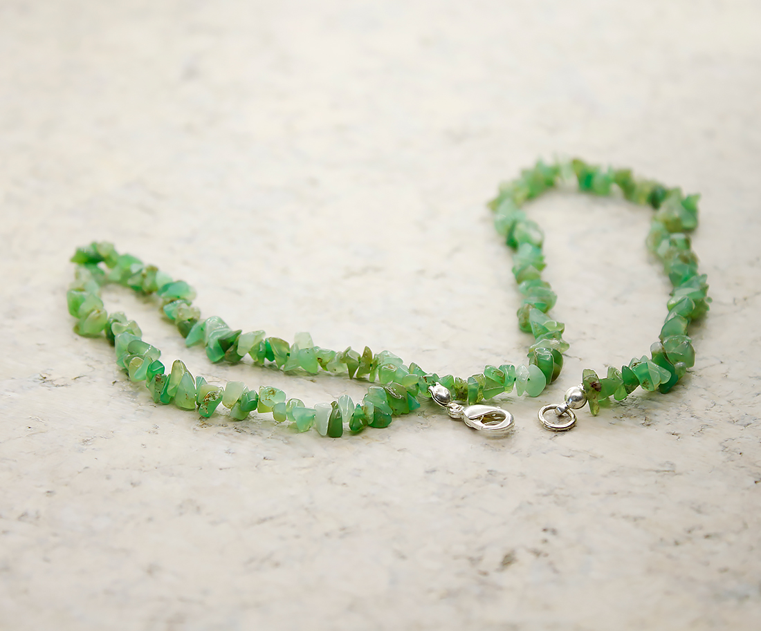 Бусы из хризопраза "Бланка", галька, короткие 45см