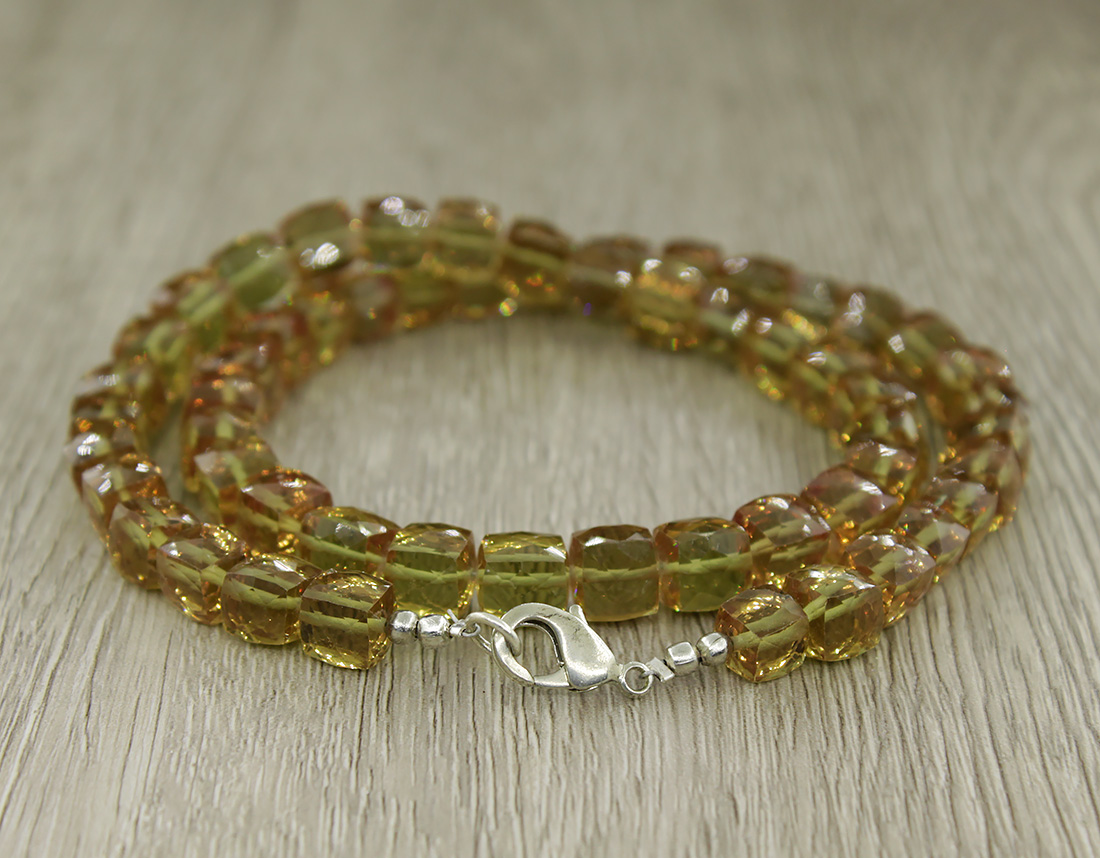 Султанит, граненые кубики 7мм, бусы "Текта", длина 48см