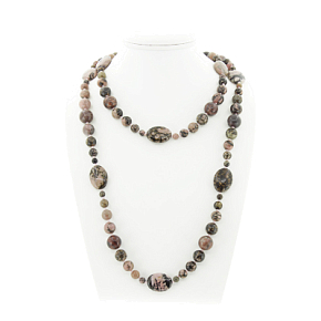 Запоминающиеся бусы из натурального родонита дополнят яркими красками Ваш повседневный или праздничный образ. Длина бус позволяет носить их в два яруса или завязать узлом. Диаметр круглых бусин от 6мм до 14мм, плоских овальных 18х25мм. Длина бус 128см.