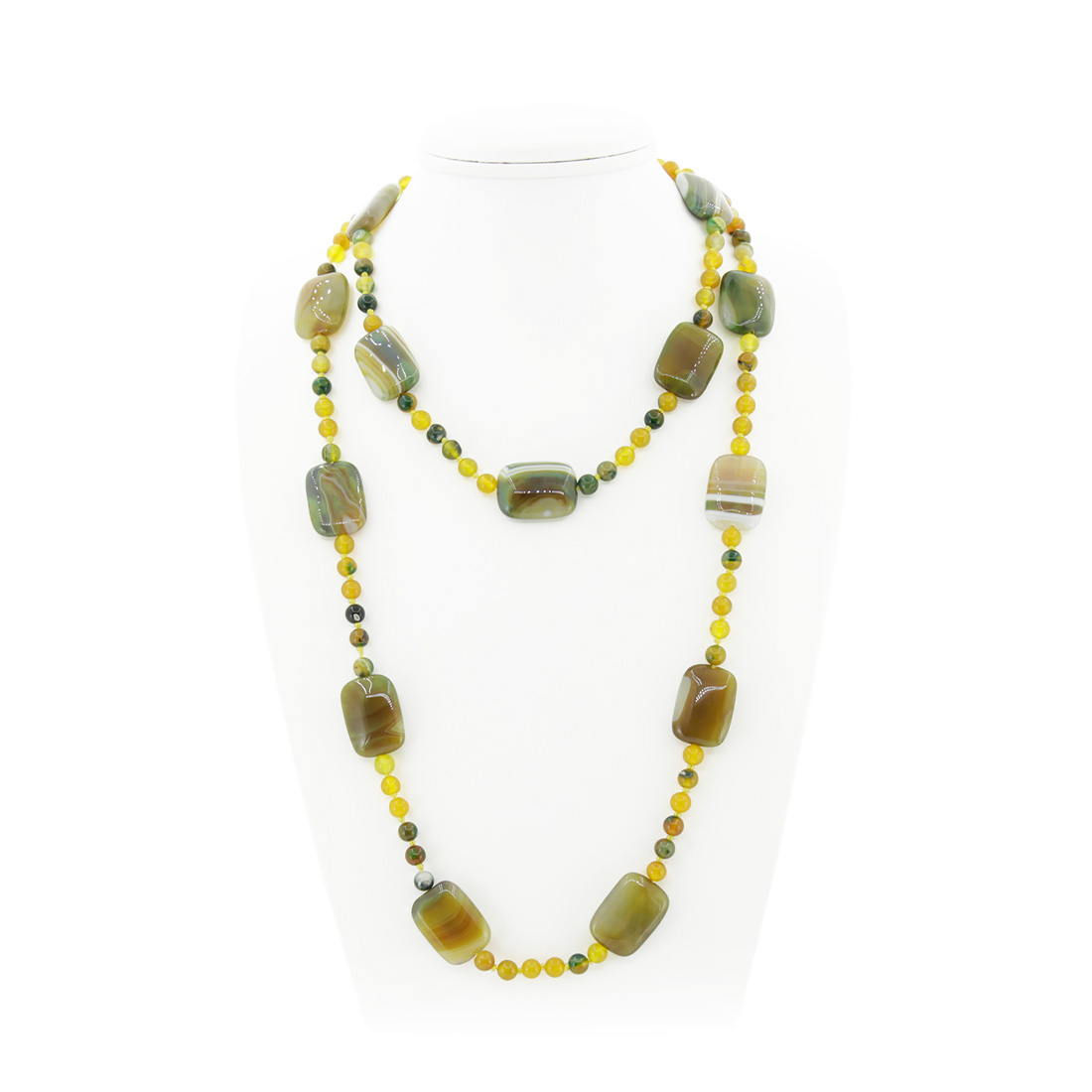 Агат зеленый с желтым (Бразилия), плоские прямоугольные бусины 18x25мм, бусы "Гармония" длиной 116см