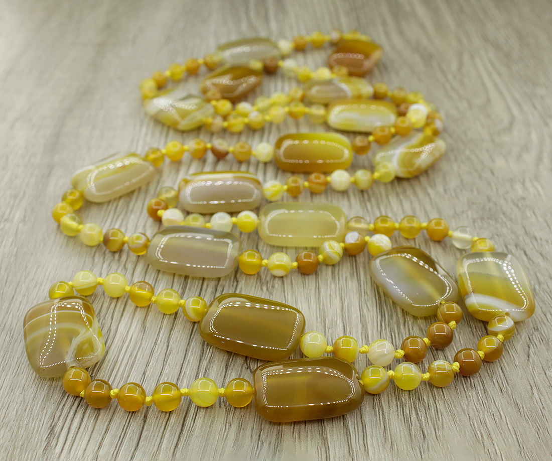 Агат желтый (Бразилия), плоские прямоугольные бусины 18x25мм, бусы "Гармония" длиной 116см