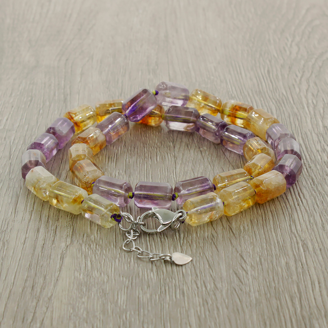 Бусы цитрин и аметист, бочонки граненые 11,5х8мм, короткие 46см