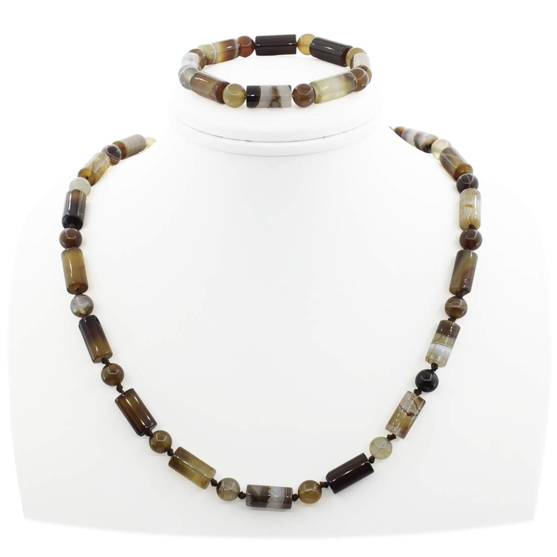 Комплект из бежево-коричневого агата, "Инки", бусы+браслет, бусы 53..59см, браслет 19см