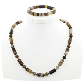 Уютный комплект из натурального агата навевает воспоминания о горячей кружке кофе с молоком в непогоду. Он хорошо впишется в Ваш повседневный образ. Комплект состоит из бус и браслета. Длина бус: 53см, регулирутся до 59см за счёт цепочки. Длина браслета: 19см.
