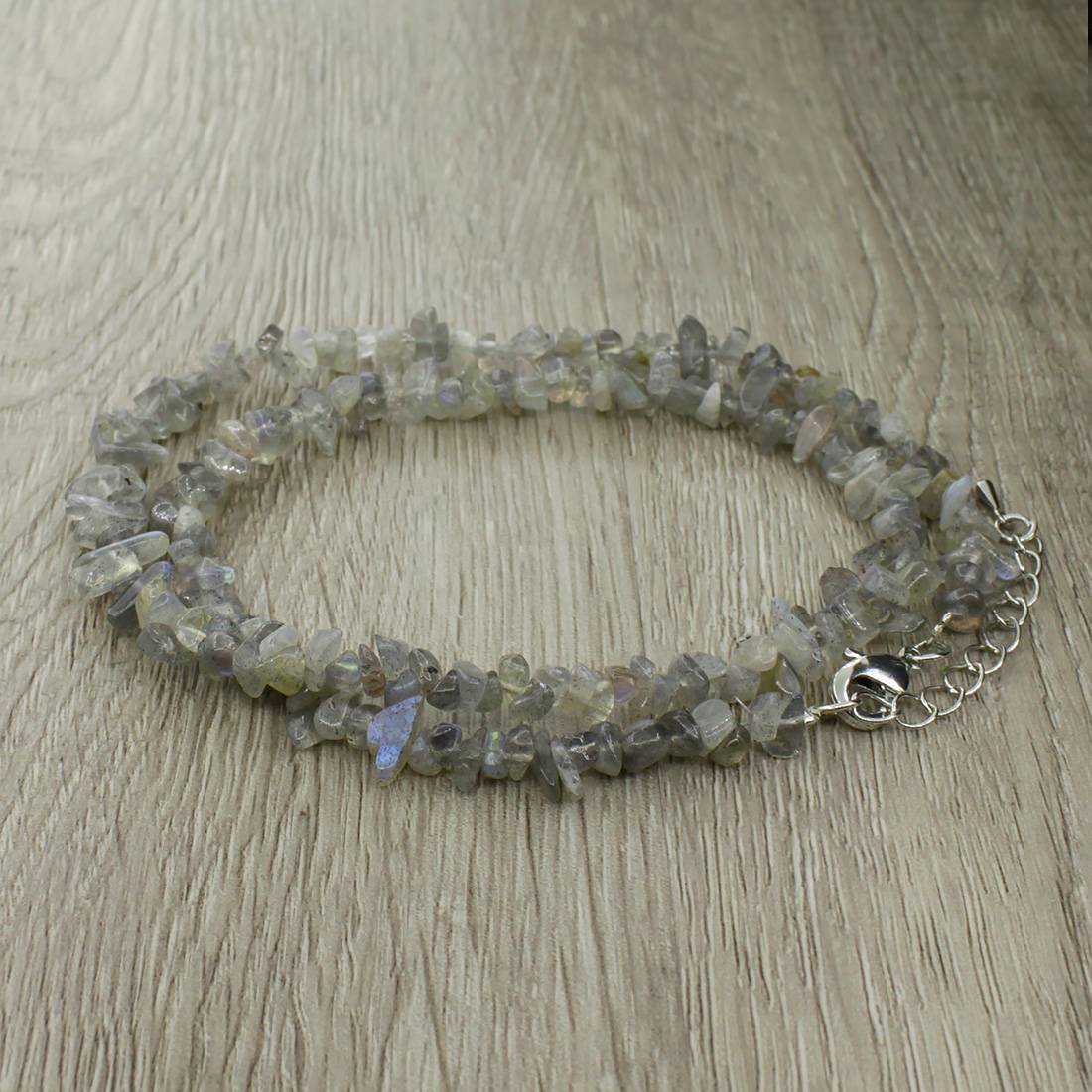 Бусы "Россыпь" из натурального лабрадора придадут Вашему образу шарма. Украшение на металлической нити, с замком-карабином из ювелирного сплава. Длина бус: 45см, регулируется до 50см за счёт цепочки.