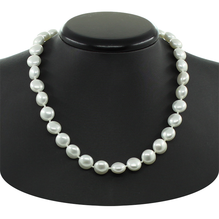 Бусы майорка белая, таблетки 12мм, короткие 48см