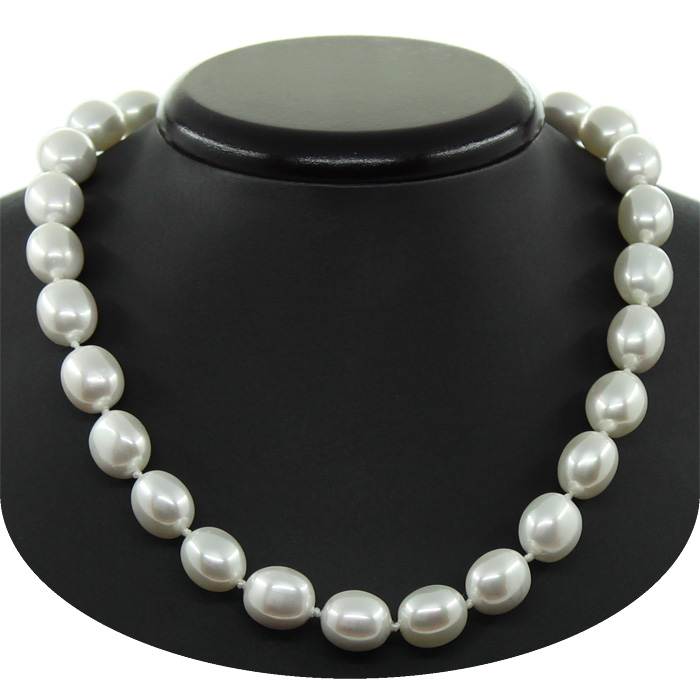 Бусы майорка белая, овальные 12х15мм, короткие 45см